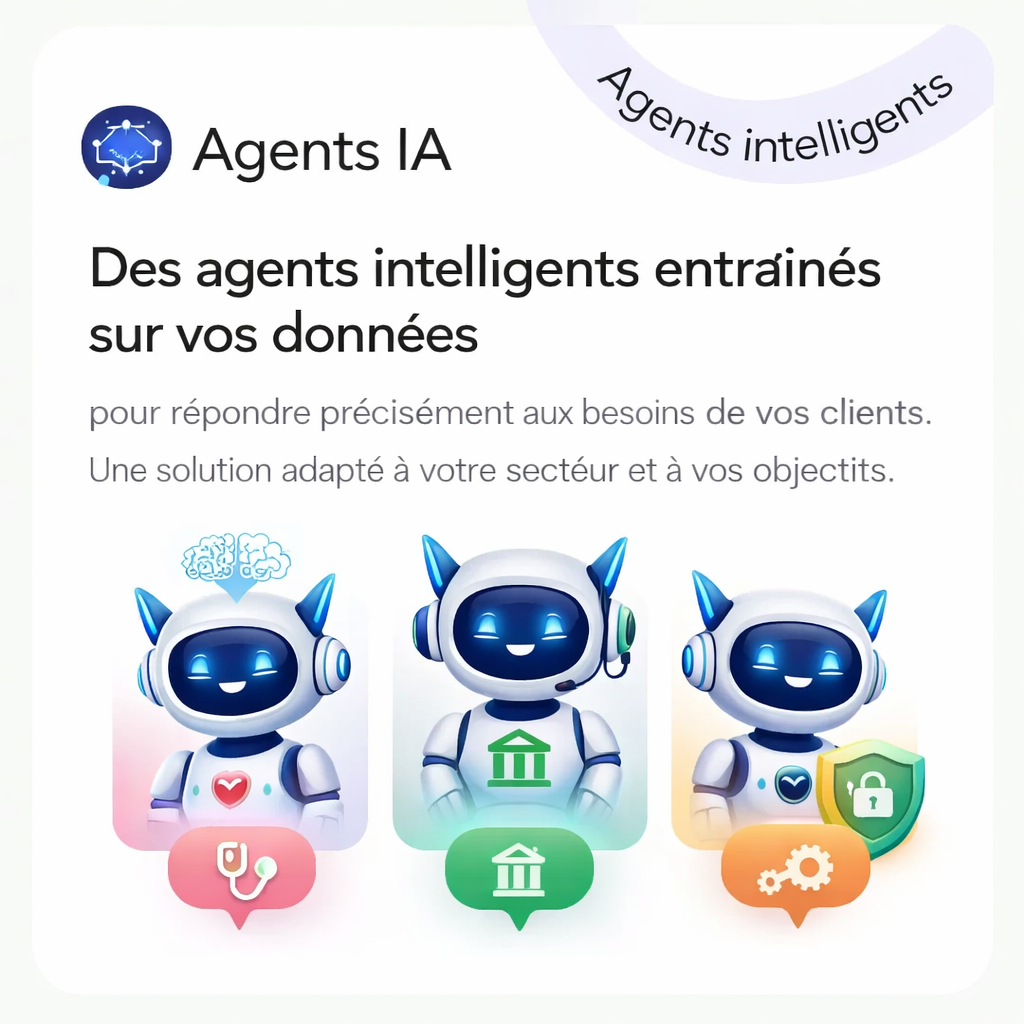 Des agents intelligents entraînés sur vos données pour répondre précisément aux besoins de vos clients.