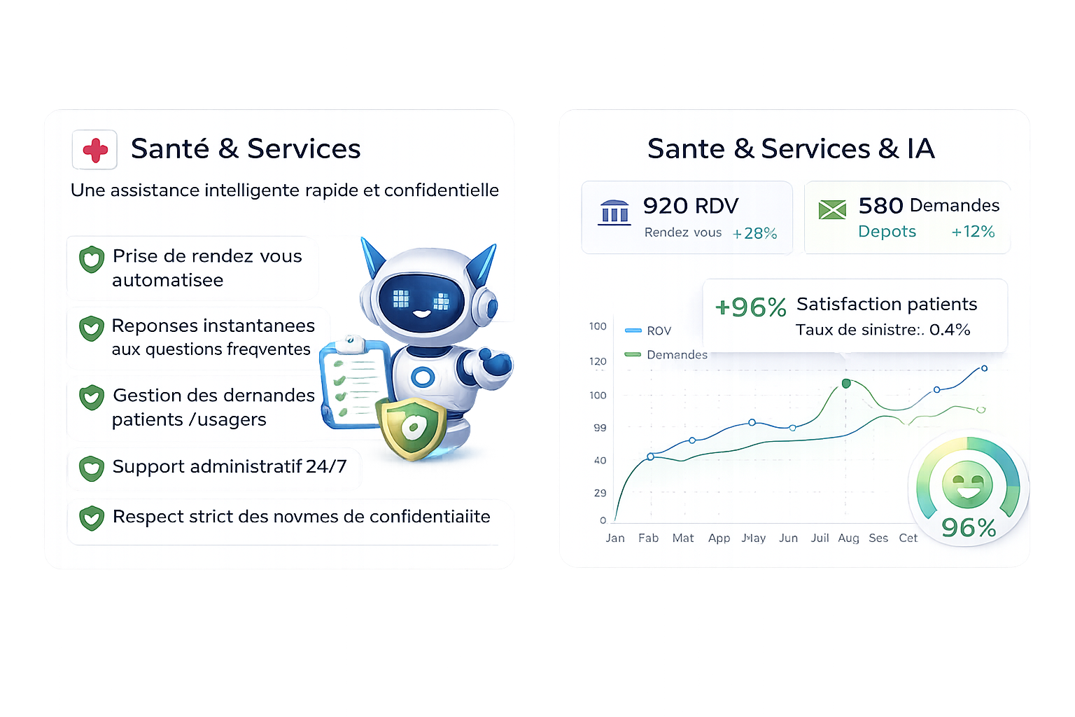 Simplifiez la prise d’informations, automatisez la gestion des demandes et optimisez le support administratif tout en garantissant la confidentialité et la protection des données sensibles.