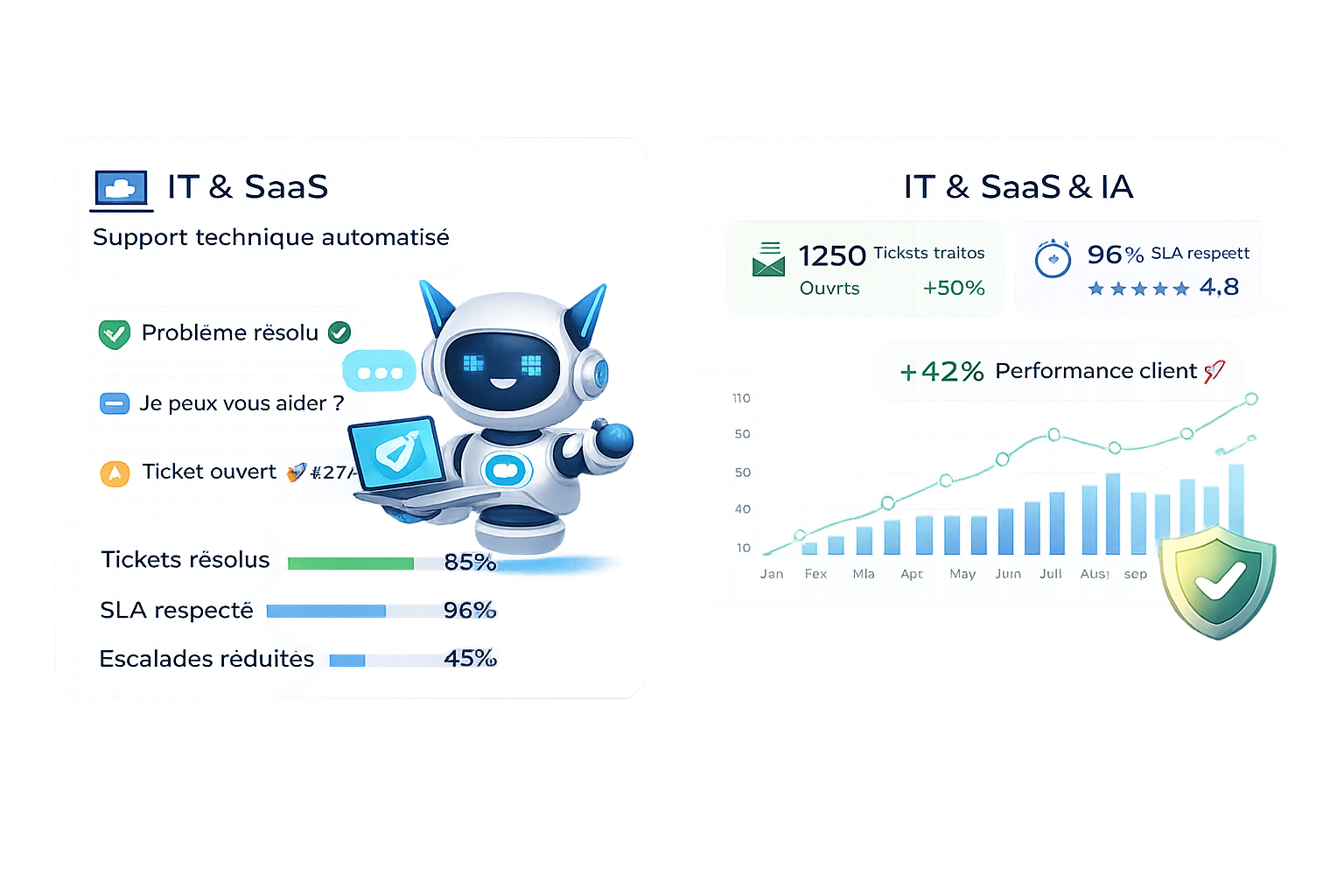 Automatisez le support technique de niveau 1, accompagnez vos utilisateurs en temps réel et optimisez votre service client sans alourdir la charge de vos équipes.