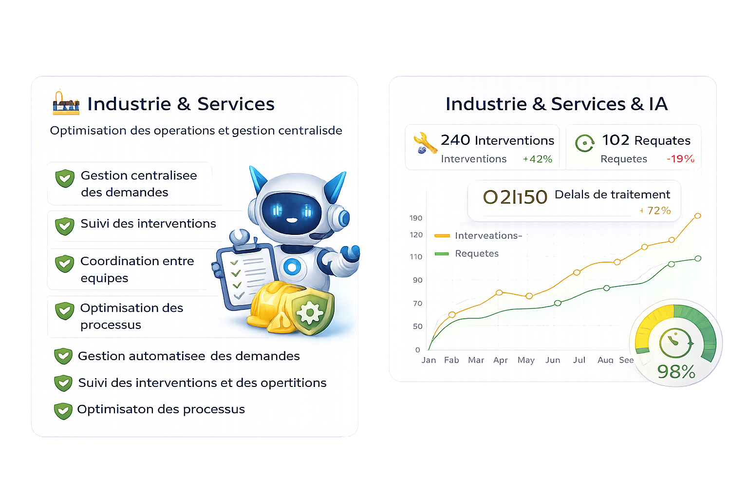 Modernisez votre organisation, gagnez en réactivité et améliorez la performance de vos opérations grâce à une IA conçue pour votre environnement industriel et de services.